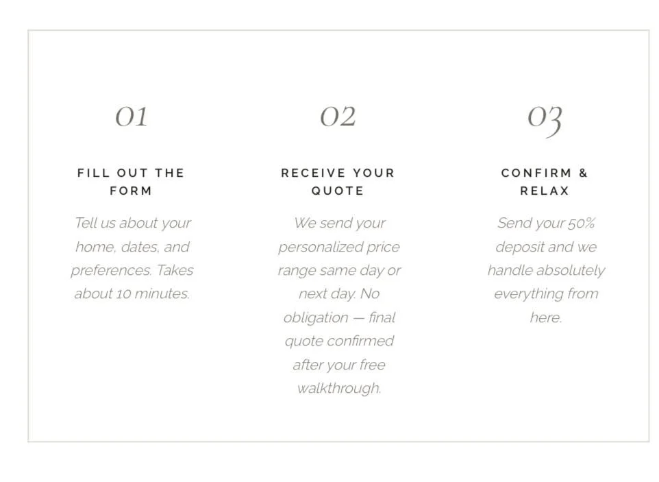 Fill out the intake form below. We’ll send your personalized estimate same day or next day — then schedule your free walk through to confirm every detail and lock in your final quote.