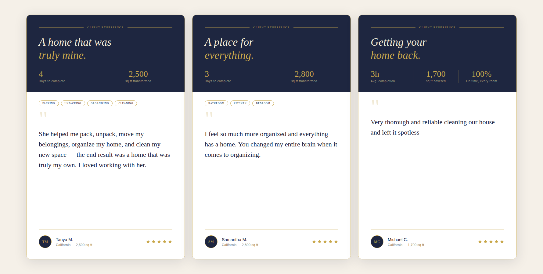 We pack, clean, coordinate your movers, and organize your entire new home — so you sleep there the same night.